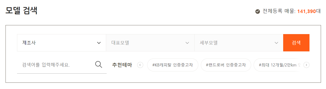 원하는 차량명을 직접 입력하여 검색을 하거나, 카테고리를 통해서 차량을 선택하여 검색을 하면 됩니다.